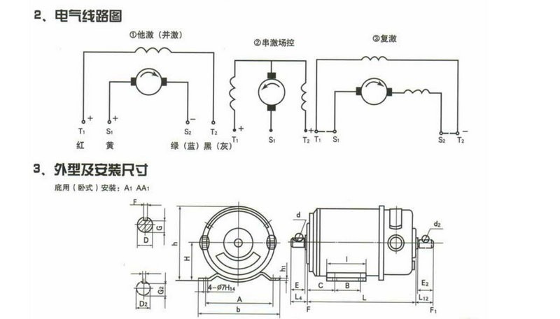 電機(jī)安裝尺寸和出軸尺寸,可根據(jù)用戶要求而定做。